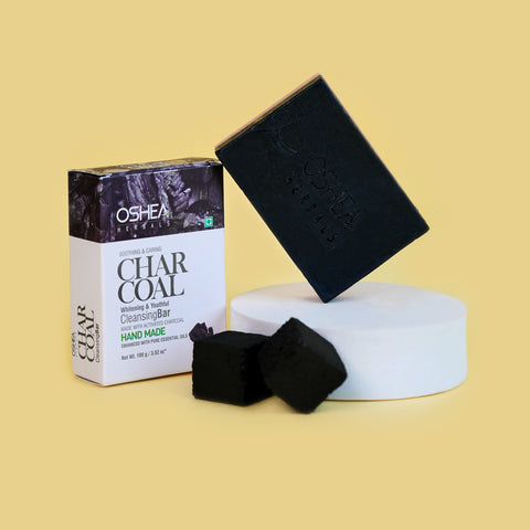 Our Oshea Herbals Charcoal Cleansing Bar is a handmade soap enriched with activated charcoal and pure essential oils. Experience skin whitening and a youthful glow, as it's free from animal fat, sulfates, parabens, and artificial fragrances.