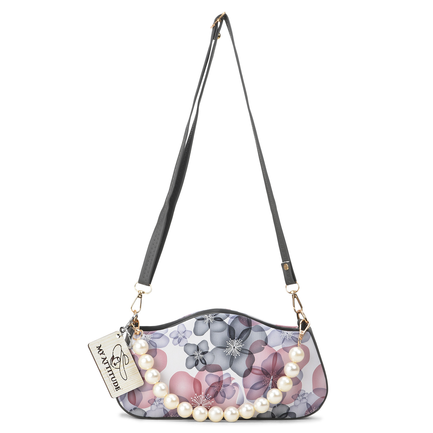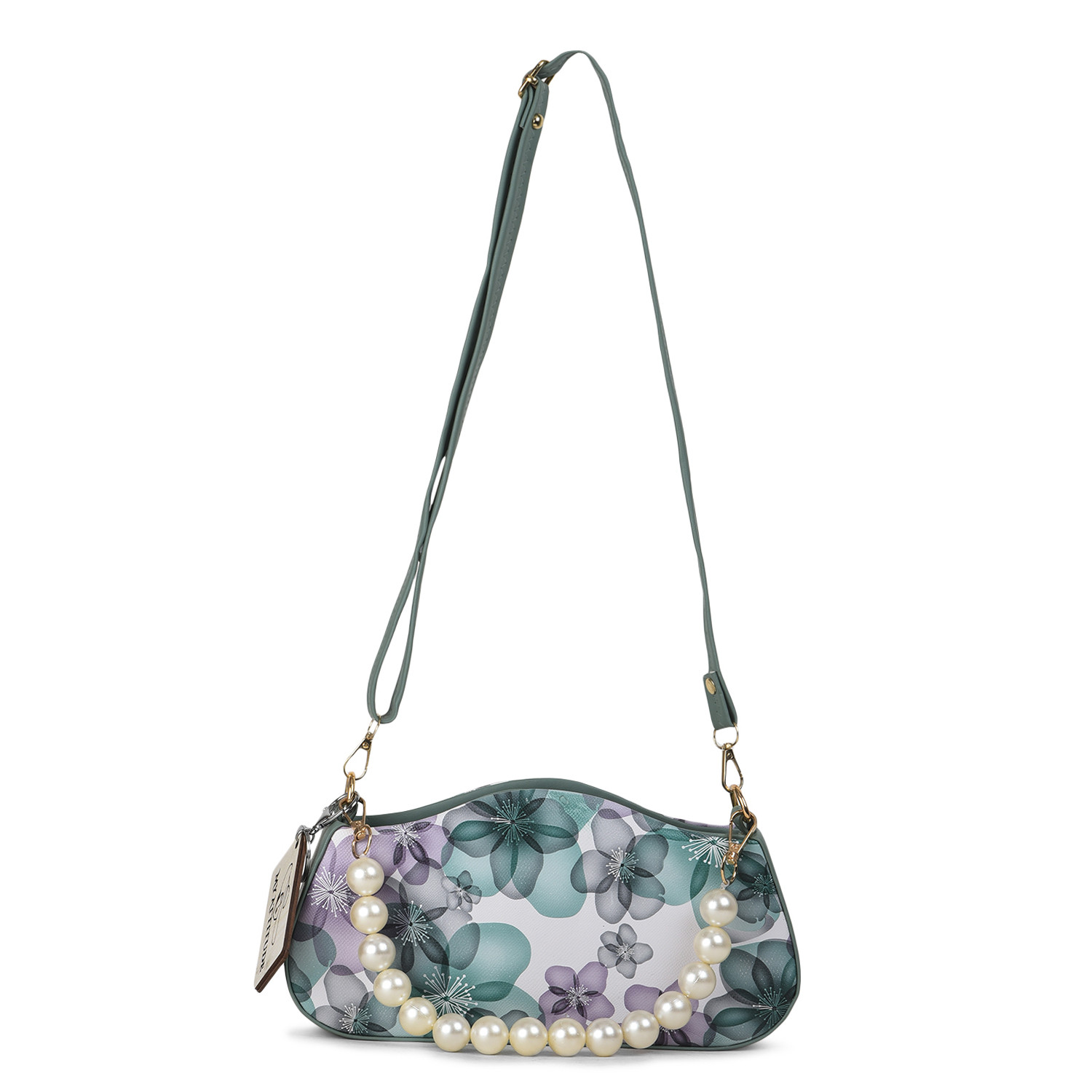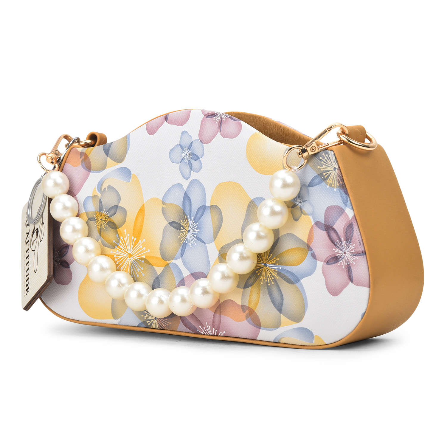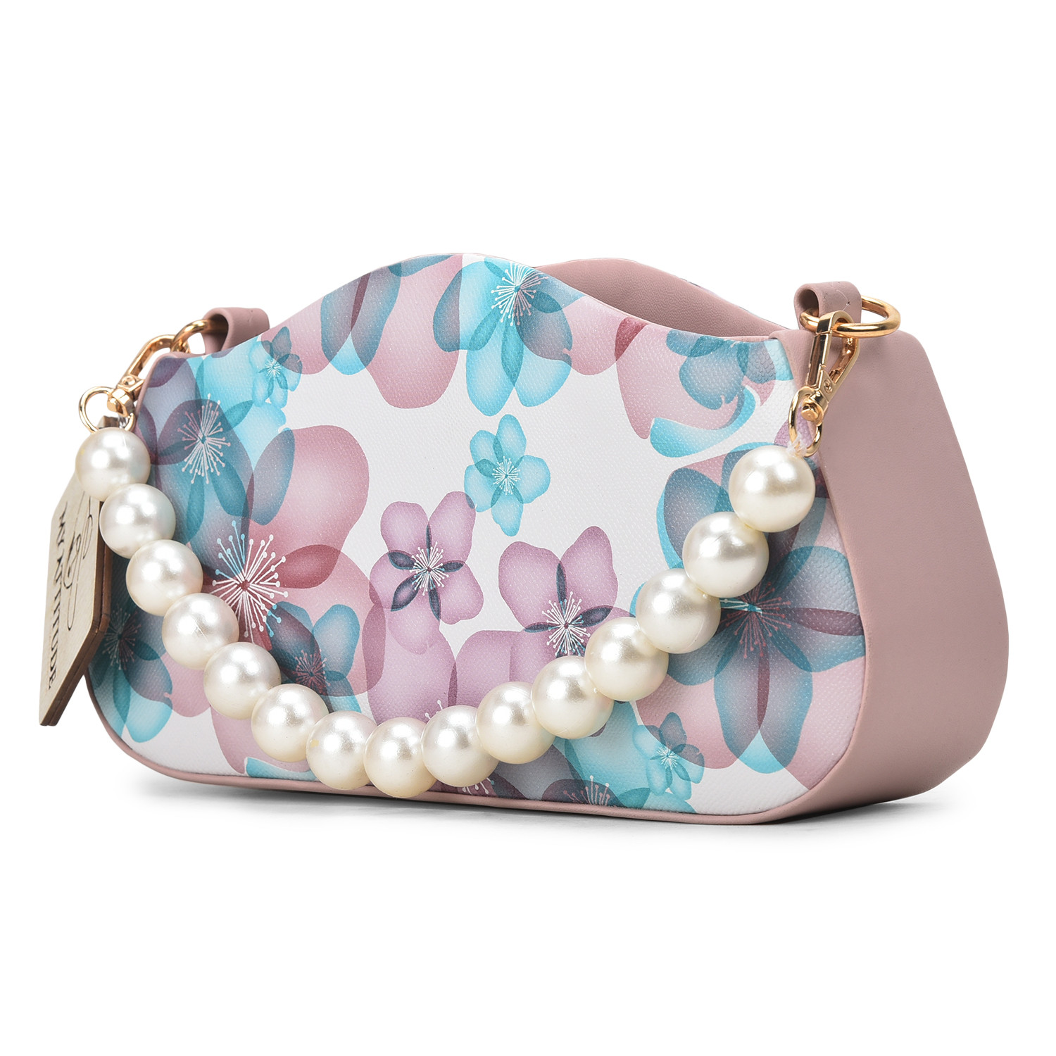 "Floral Pearl Handle Box Sling: Elevate your elegance with this exquisite box sling bag. Adorned with delicate floral patterns and featuring a pearl-studded handle, it's a harmonious blend of sophistication and charm. Whether you're attending a garden soiree or a special evening event, this sling adds a touch of grace while providing practicality with its compact size."