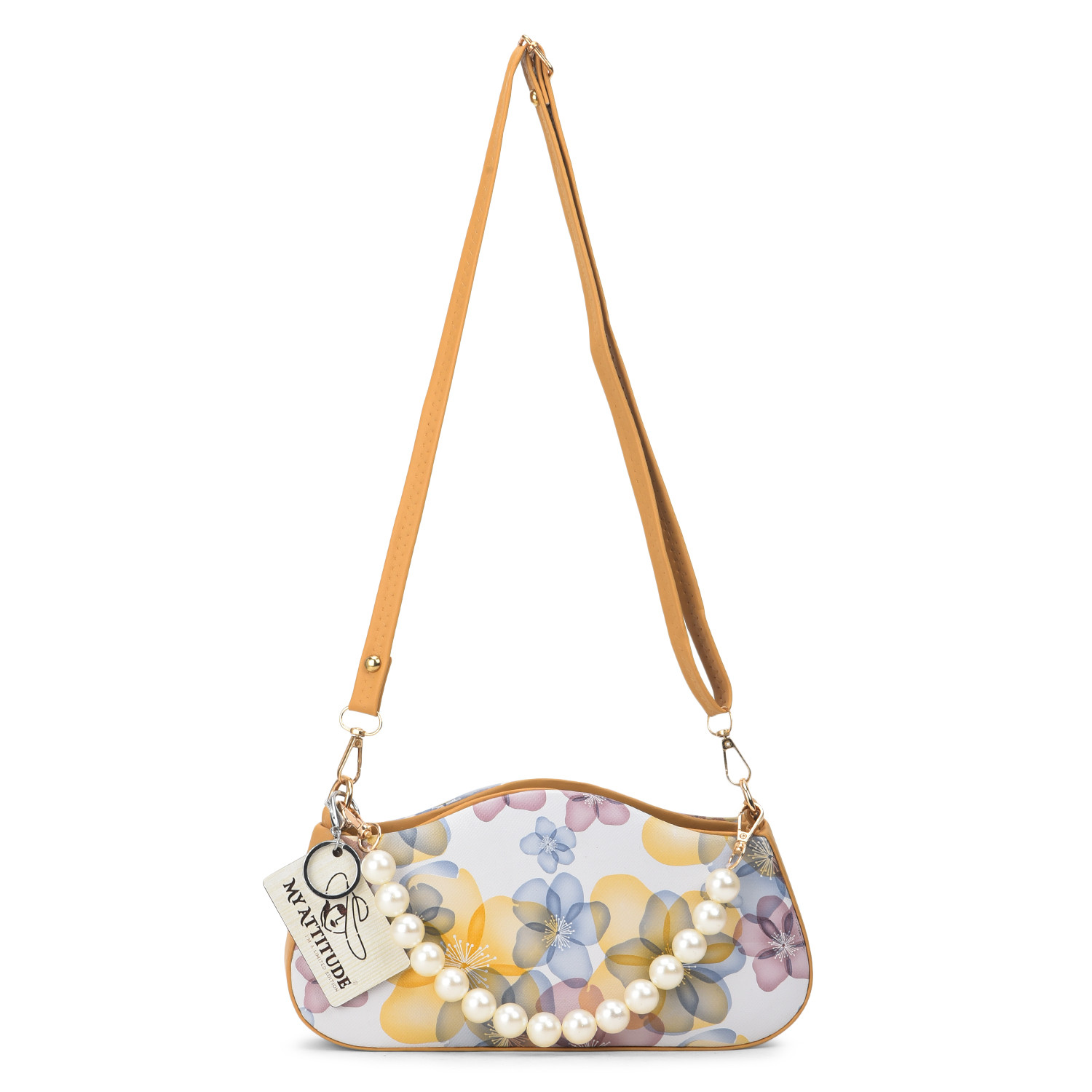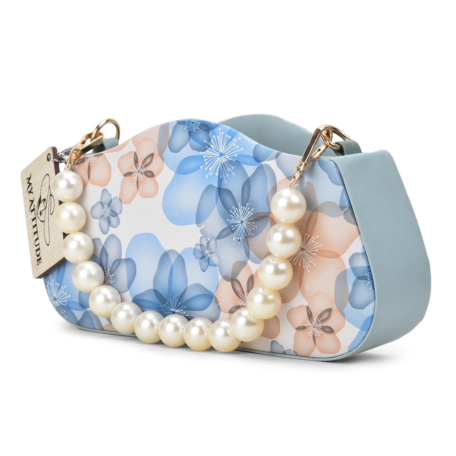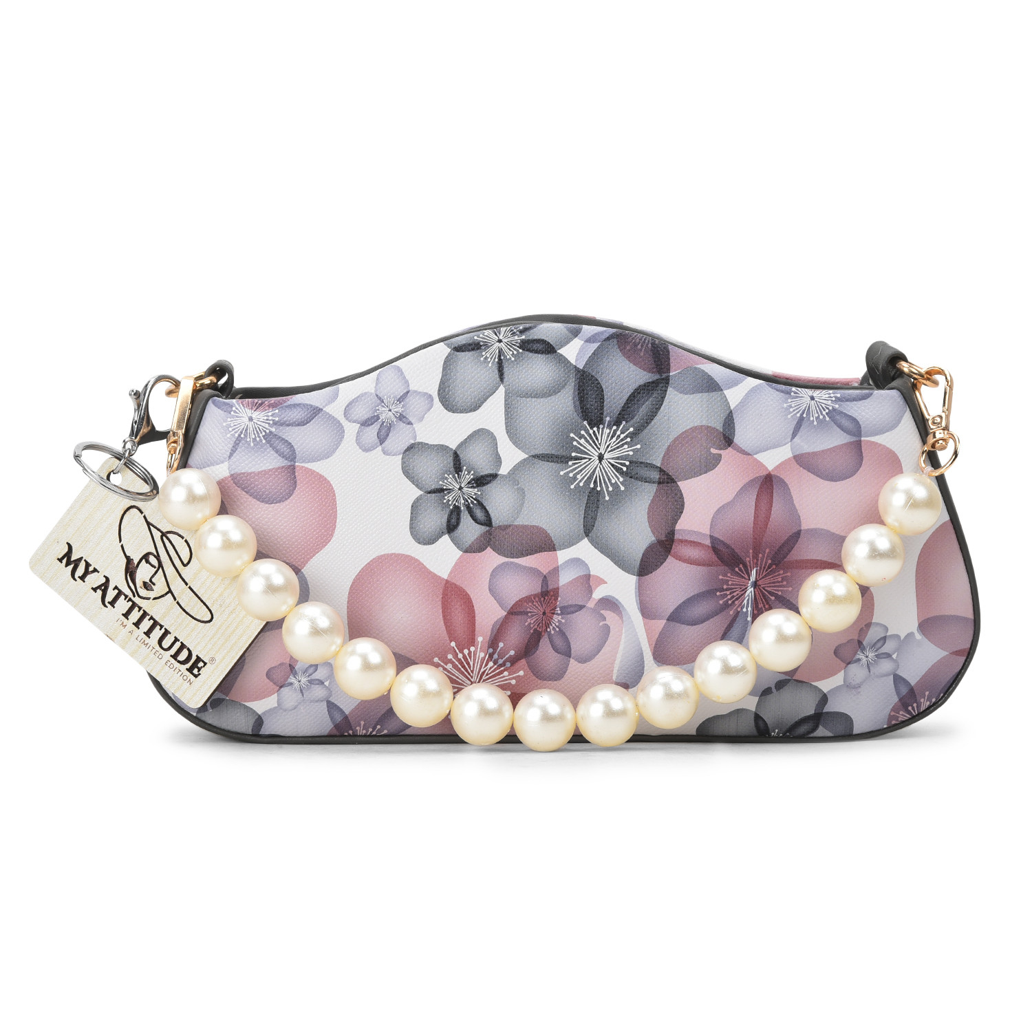 "Floral Pearl Handle Box Sling: Elevate your elegance with this exquisite box sling bag. Adorned with delicate floral patterns and featuring a pearl-studded handle, it's a harmonious blend of sophistication and charm. Whether you're attending a garden soiree or a special evening event, this sling adds a touch of grace while providing practicality with its compact size."