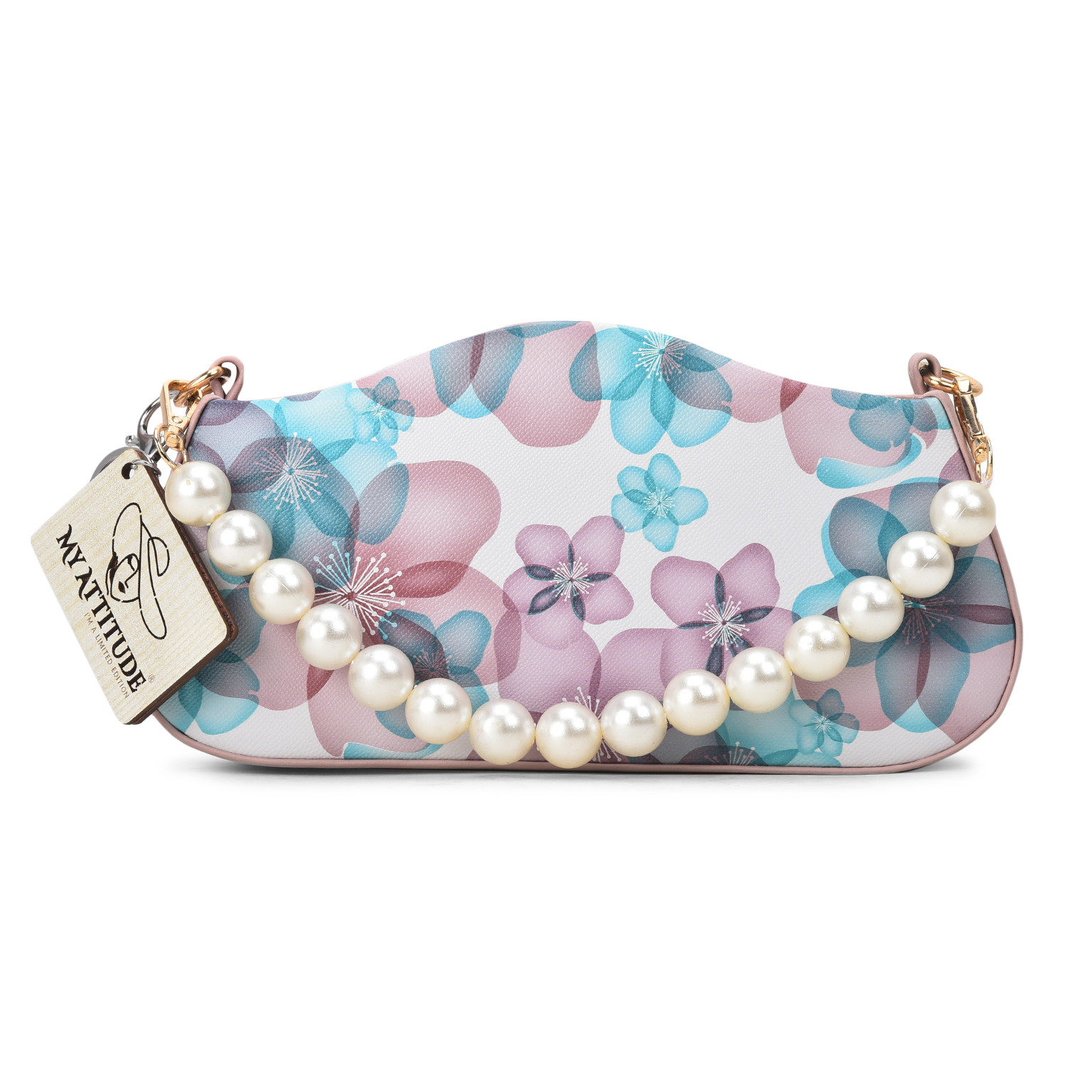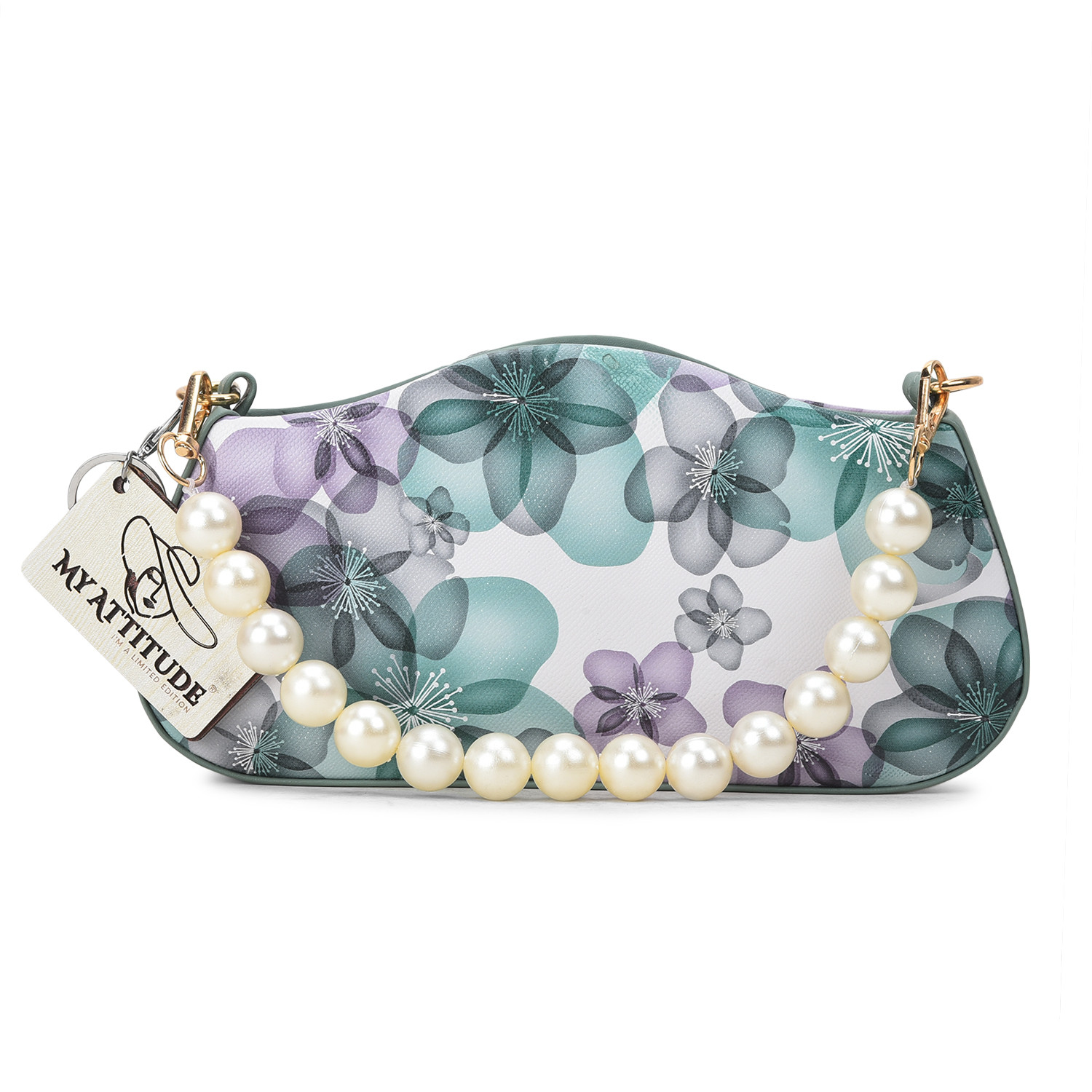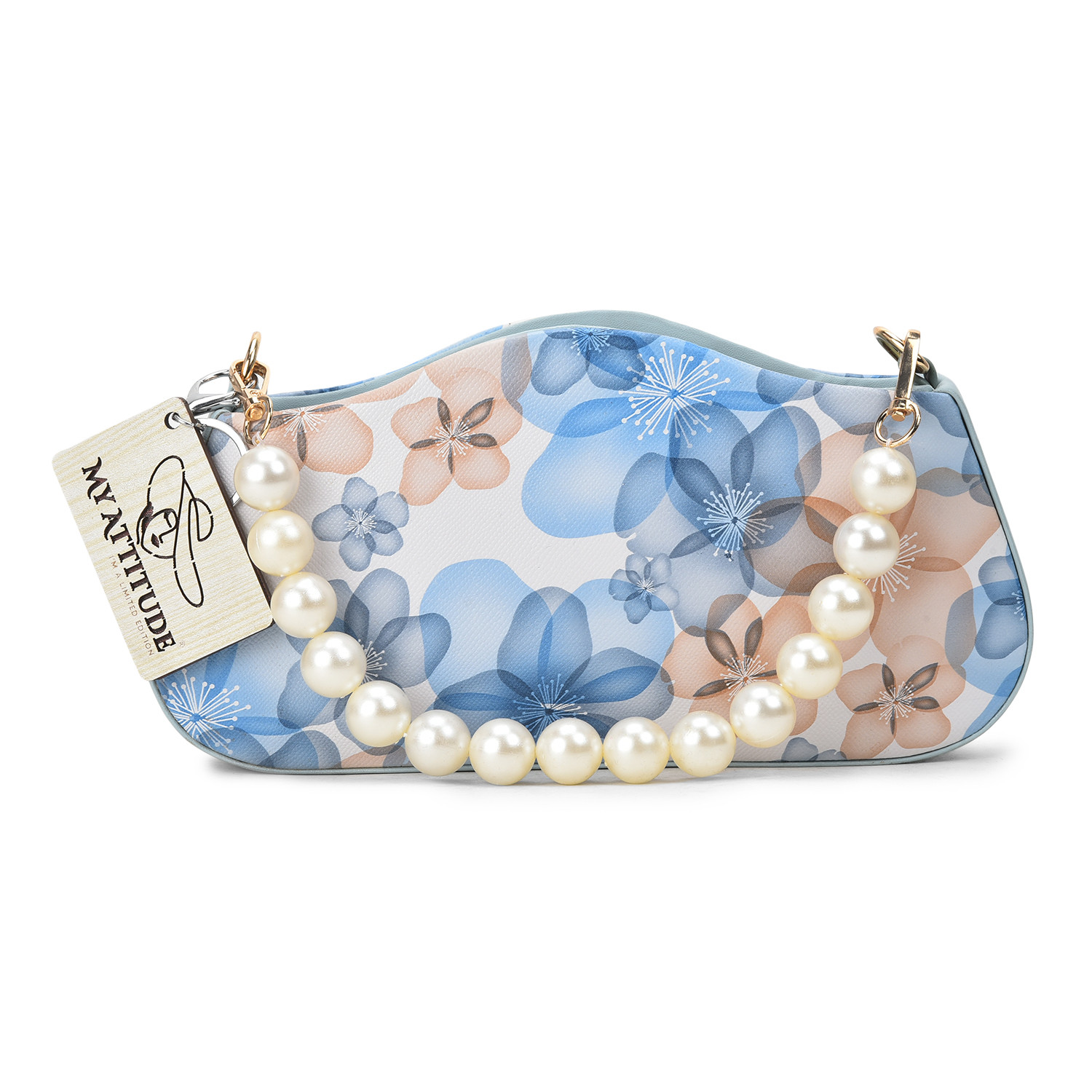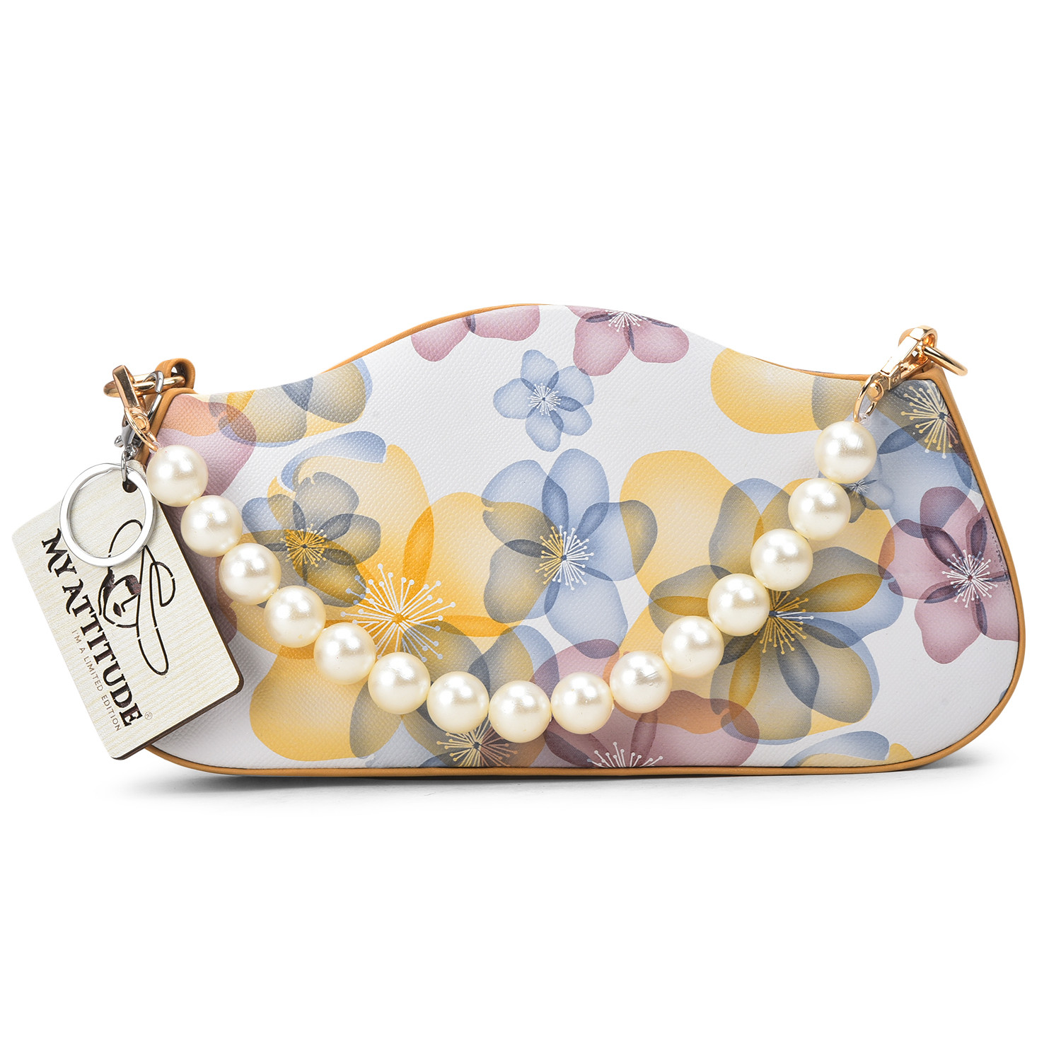 "Floral Pearl Handle Box Sling: Elevate your elegance with this exquisite box sling bag. Adorned with delicate floral patterns and featuring a pearl-studded handle, it's a harmonious blend of sophistication and charm. Whether you're attending a garden soiree or a special evening event, this sling adds a touch of grace while providing practicality with its compact size."