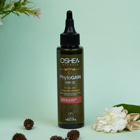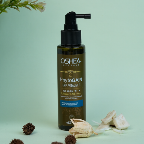 Phytogain hair vitalizer that heals damaged roots and controls hair fall. A unique blend of rare and essential herbs. It stimulates the anagenic phase of the hair growth cycle and also works to reverse the effects of harmful substances on hair growth. It induces quick multiplication of hair fiber cells, which results in faster development of hair follicles. It improves tensile strength of hair and increase hair density.