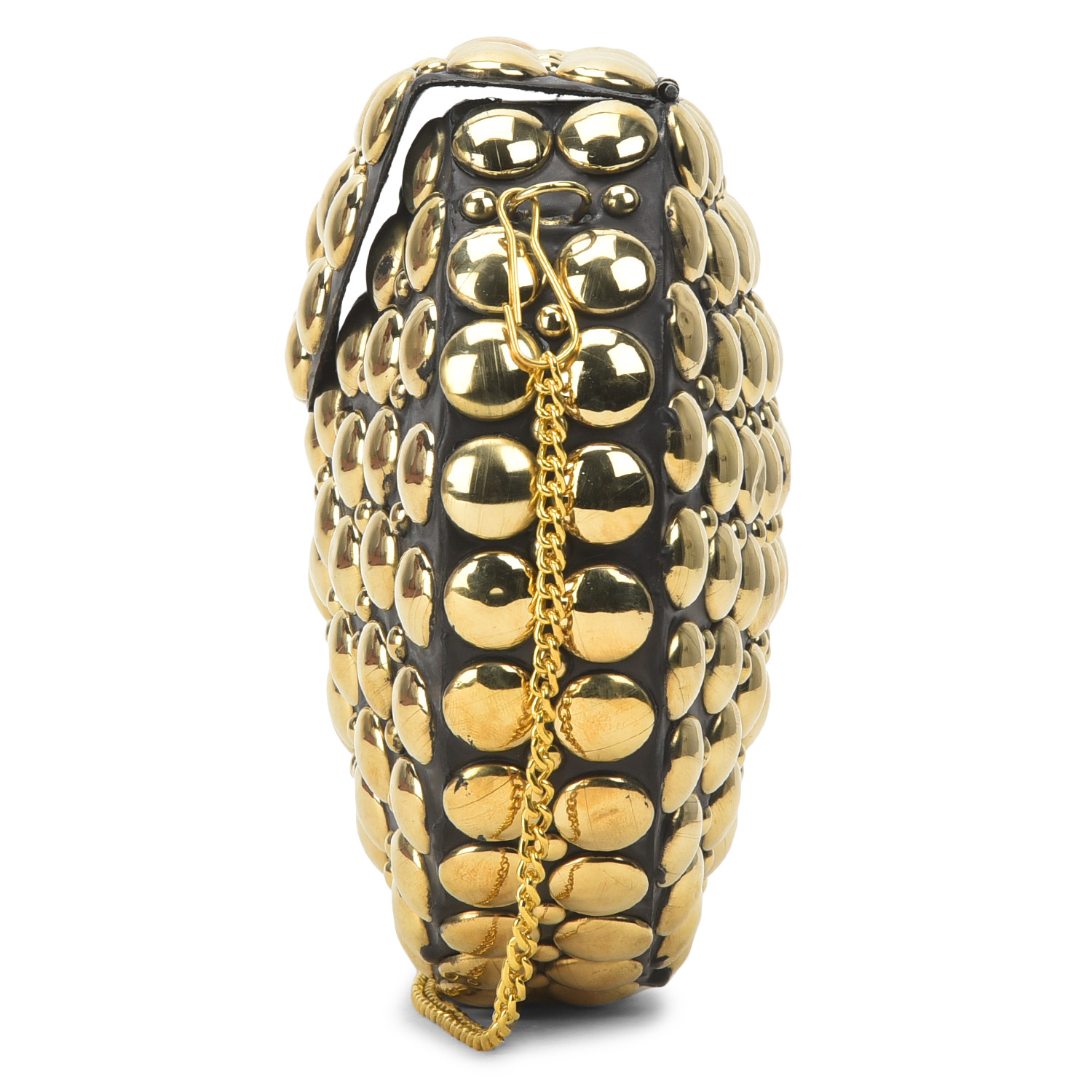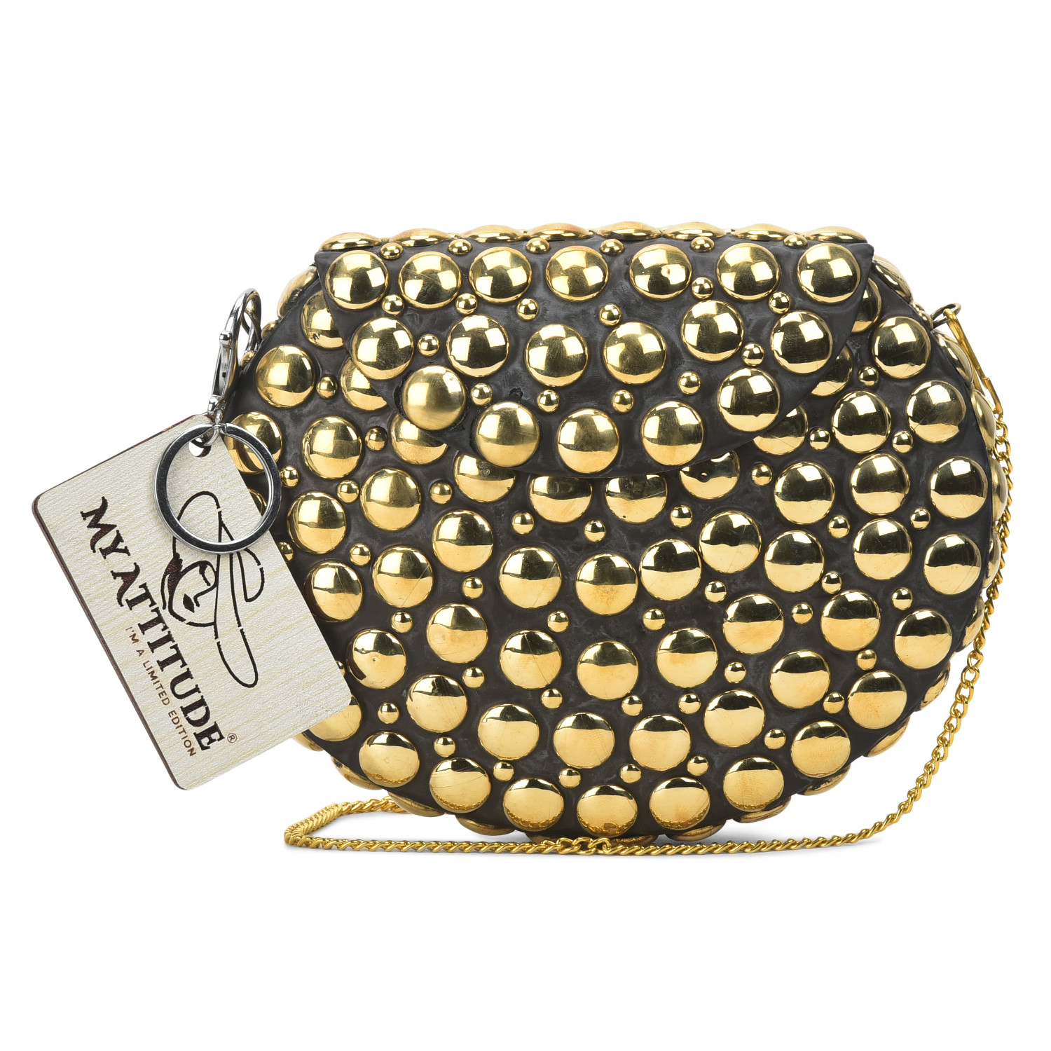 Elevate your ensemble with our exquisite brass clutch. Its sleek and compact design is adorned with a lustrous brass finish that radiates sophistication. The clutch's timeless elegance is complemented by a convenient and secure clasp, making it the perfect accessory for both formal affairs and chic evenings out. Crafted to merge fashion and functionality, this brass clutch effortlessly embodies refined glamour in the palm of your hand.