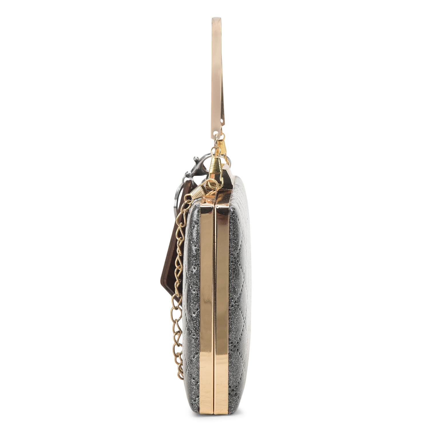 Embrace elegance with our shimmering clutch, a radiant accessory that effortlessly catches the light with its iridescent hues. Its sleek design combines modern sophistication with timeless charm, making it the perfect companion for any special occasion. Crafted with meticulous attention to detail, this beautiful clutch adds a touch of enchantment to your ensemble, making you shine from within.