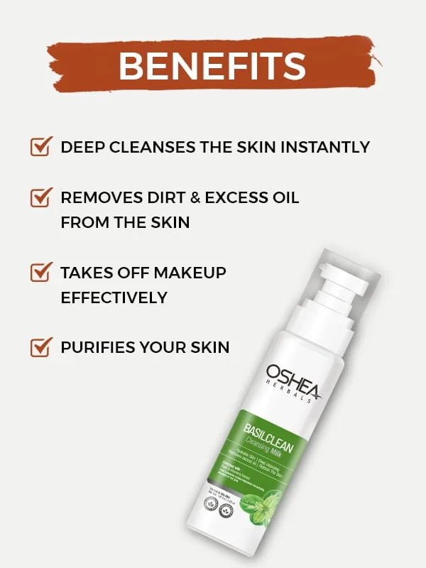Oshea Herbals Basilclean Cleansing Milk is specially made for normal to oily skin and contains precious herbal extracts that cleanse the skin in depth. It removes excessive oil and lifts impurities from the skin without disturbing the natural balance of the skin. Helps in taking off makeup effectively while deeply cleansing your skin, eliminating excess oil, and purifying it. Its hydrating formula not only leaves your skin feeling refreshed but also ensures it stays well-nourished.