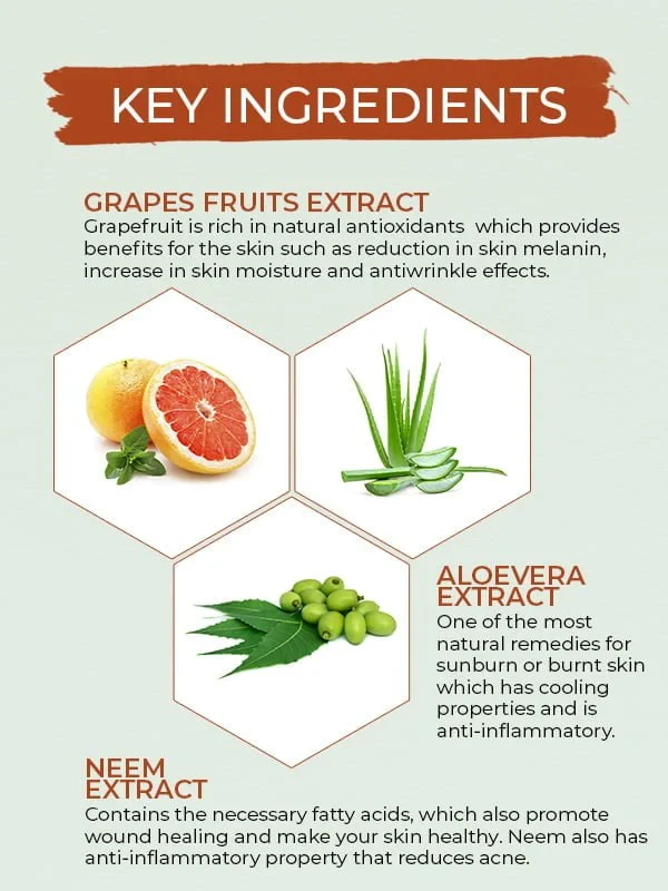 Aloevera Extract is one of the most natural remedies for sunburn or burnt skin which has cooling properties and is anti-inflammatory. It helps to moisturize the skin, fights against skin-aging, reduces infection and acne and also lightens blemishes on the face.