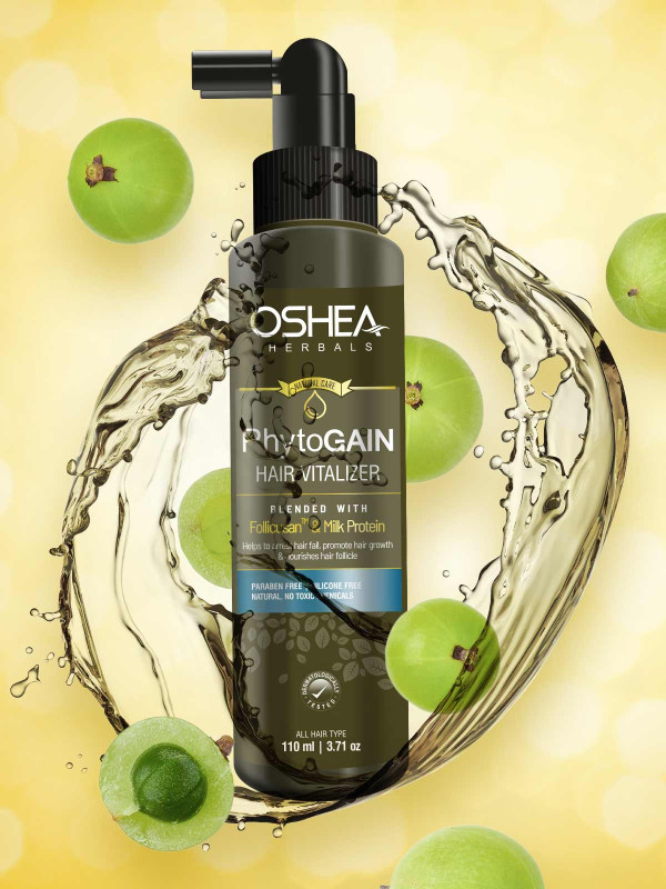 Phytogain hair vitalizer that heals damaged roots and controls hair fall. A unique blend of rare and essential herbs. It stimulates the anagenic phase of the hair growth cycle and also works to reverse the effects of harmful substances on hair growth. It induces quick multiplication of hair fiber cells, which results in faster development of hair follicles. It improves tensile strength of hair and increase hair density.