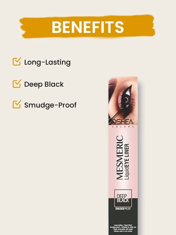 Oshea Colors Mesmeric Liquid Eye Liner provides an intense black color, enhancing the beauty of your eyes.