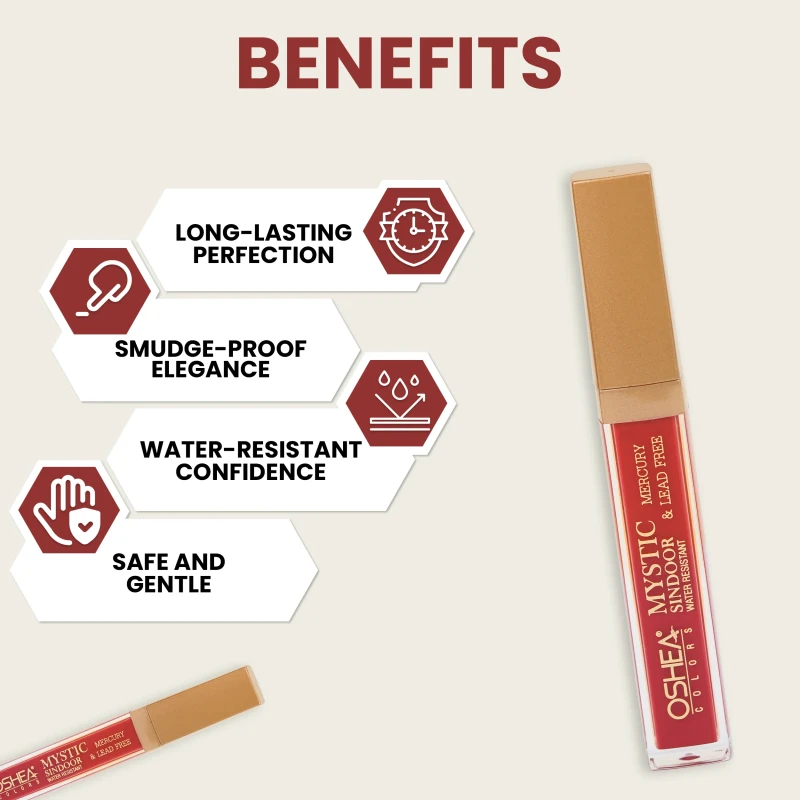 Mystic Sindoor ensures enduring beauty with its long-lasting formula, providing flawless charm throughout the day.