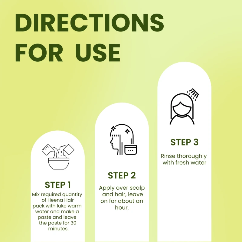Mix required quantity of Heena Hair pack with luke warm water and make a paste and leave the paste for 30 minutes.