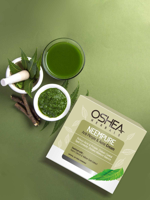 Oshea Herbalks Neempure Anti Acne Pimple Creamis a unique formula has antiseptic and healing properties of natural herbal extracts to clear pimples and skin eruptions. Keeps skin soft and smooth. Has excellent astringent and cooling properties for acne treatment. It contains combination of natural ingredients that work together to reduce pimples, pores size, oiliness of skin and lightens the post pimples marks. Skin feels pleasantly smoother, cleared and softer. Oiliness is controlled giving the face a soft, radiant.