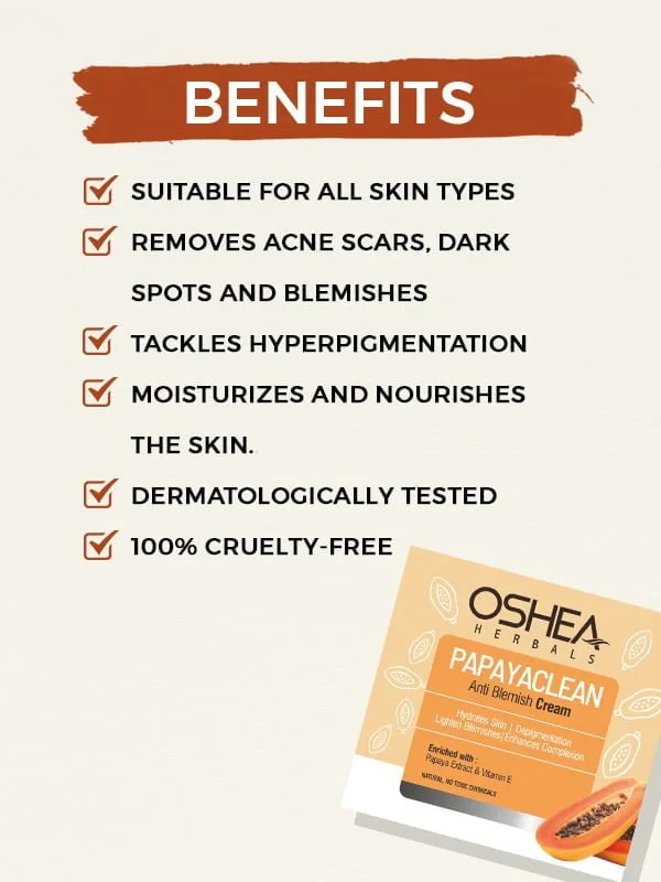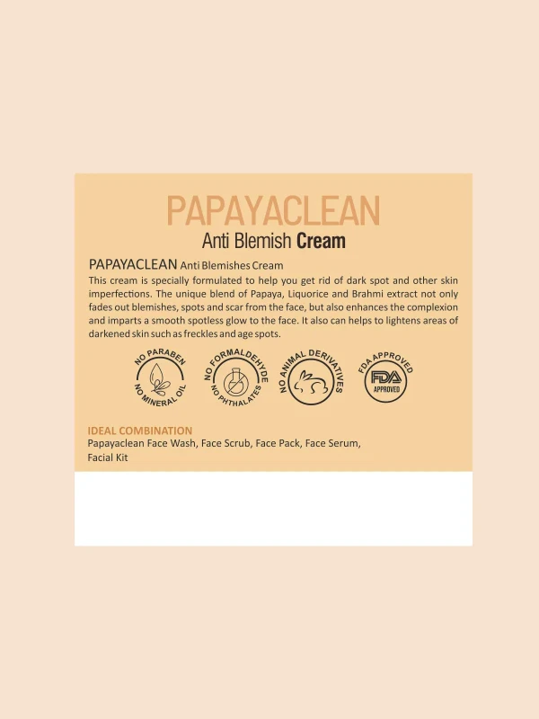 Papayaclean Anti Blemishes Face Serum, infused with papaya extract, supports De-Pigmentation. Targeting dark spots, it enhances skin tone for a visibly brighter and even appearance. Embrace the power of our serum for reduced blemishes and a radiant glowing skin.