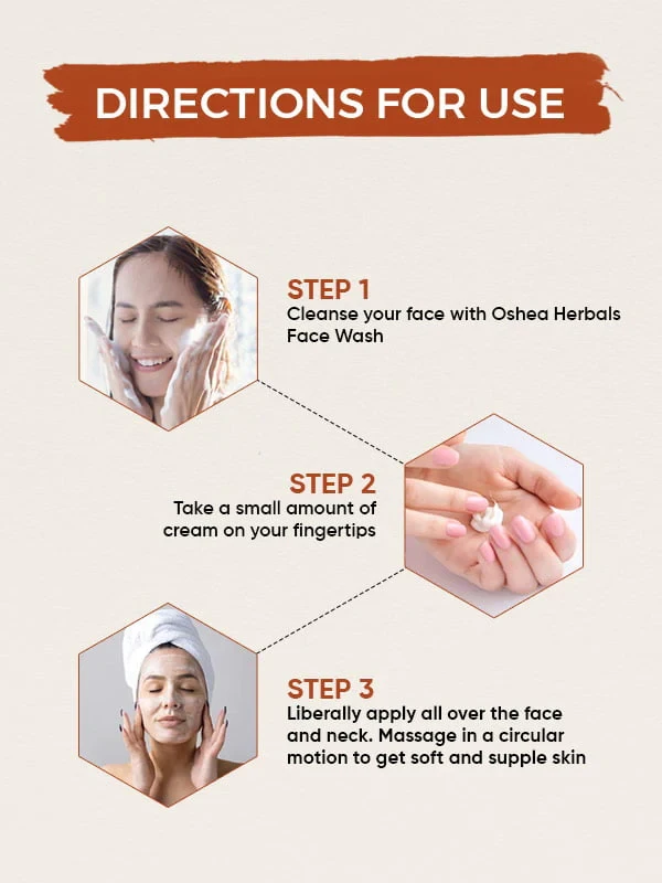 Liberally apply all over the face and neck. Massage in a circular motion to get soft and supple skin.