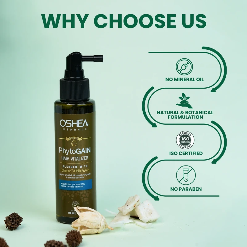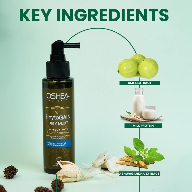 Apply Oshea Herbals Hair Vitalizer on scalp gently with your fingertips.