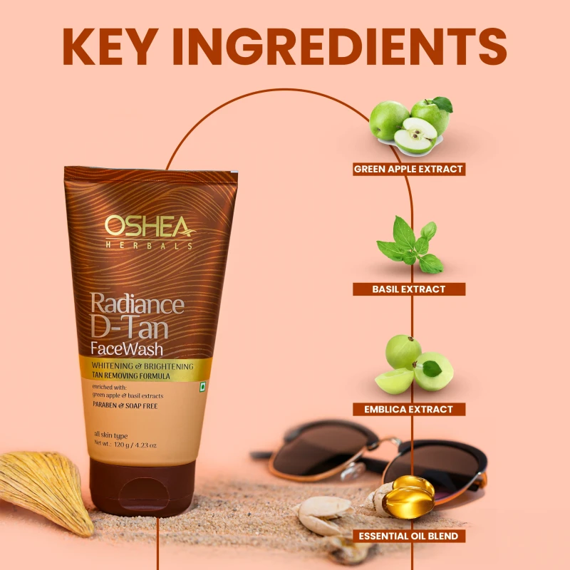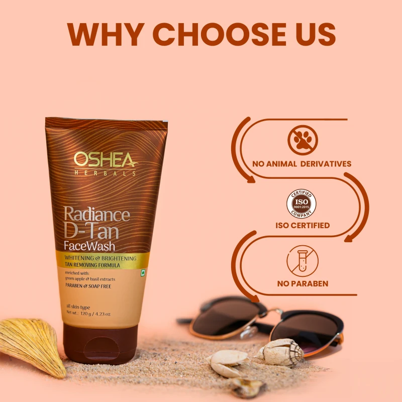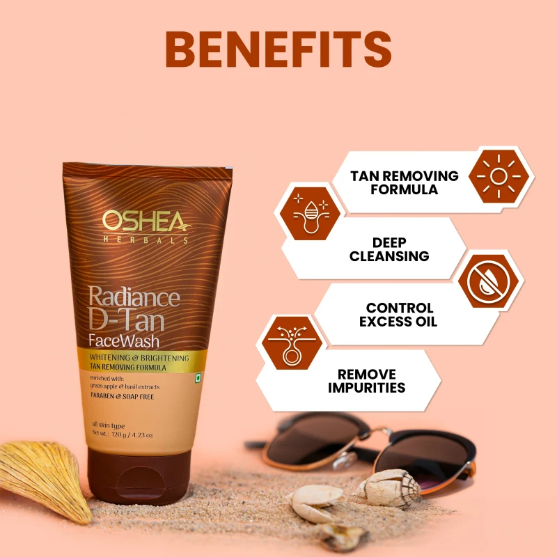 Oshea Herbals Radiance D-Tan Facewash helps to remove tan and reveals brighter, even-toned skin. Exfoliating dead cells reduces pigmentation, lightening tan lines. Improved cell turnover accelerates skin renewal, restoring natural radiance. Regular removal prevents further darkening, leaving a glowing, refreshed skin.