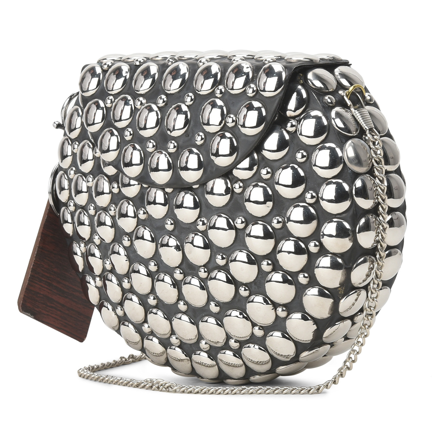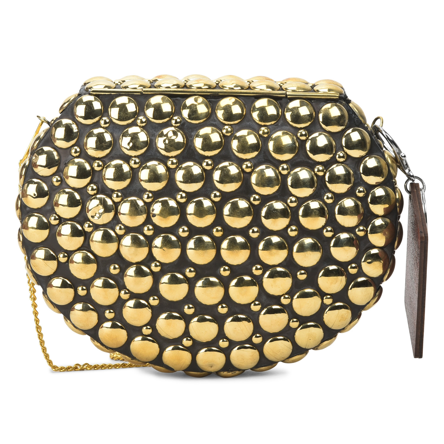 Elevate your ensemble with our exquisite brass clutch. Its sleek and compact design is adorned with a lustrous brass finish that radiates sophistication. The clutch's timeless elegance is complemented by a convenient and secure clasp, making it the perfect accessory for both formal affairs and chic evenings out. Crafted to merge fashion and functionality, this brass clutch effortlessly embodies refined glamour in the palm of your hand.